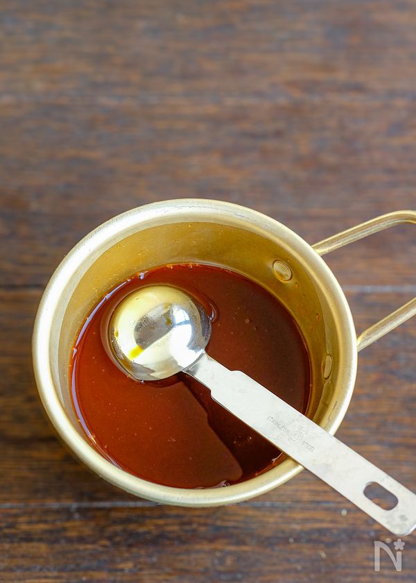 (2) 【A】を片栗粉→白だし→砂糖・オイスターソースの順に入れて混ぜる。
