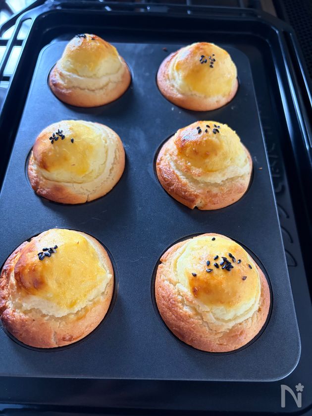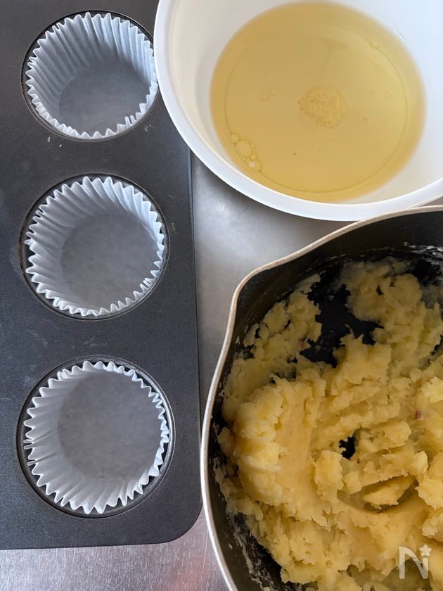 茹でて丸めてのせるだけ【米粉スイートポテトマフィン】