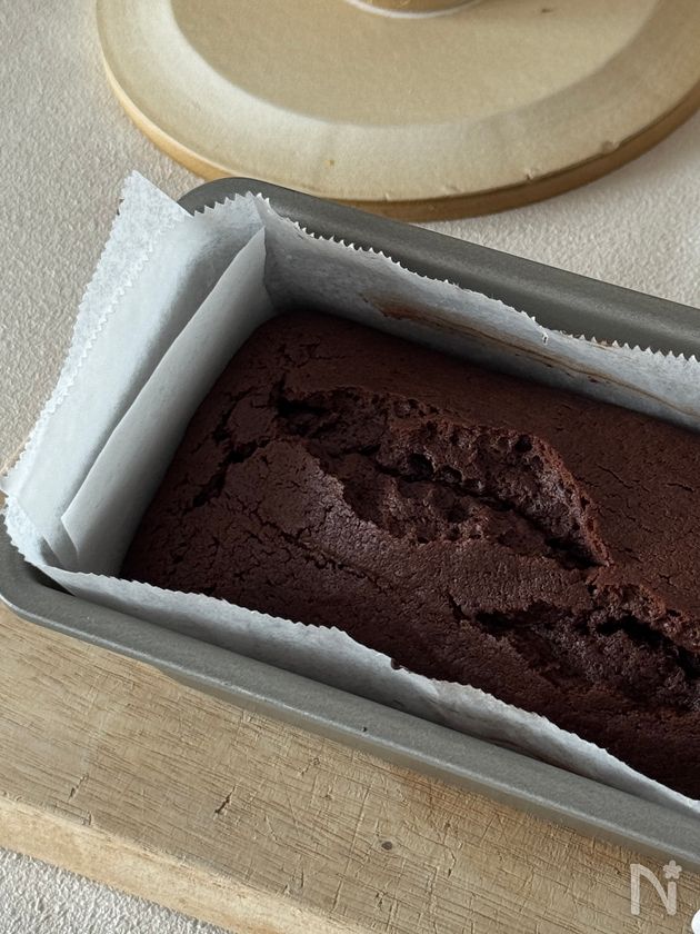 (5) 型に入れて2〜3cmの高さからトントンして170℃のオーブンで25分焼く