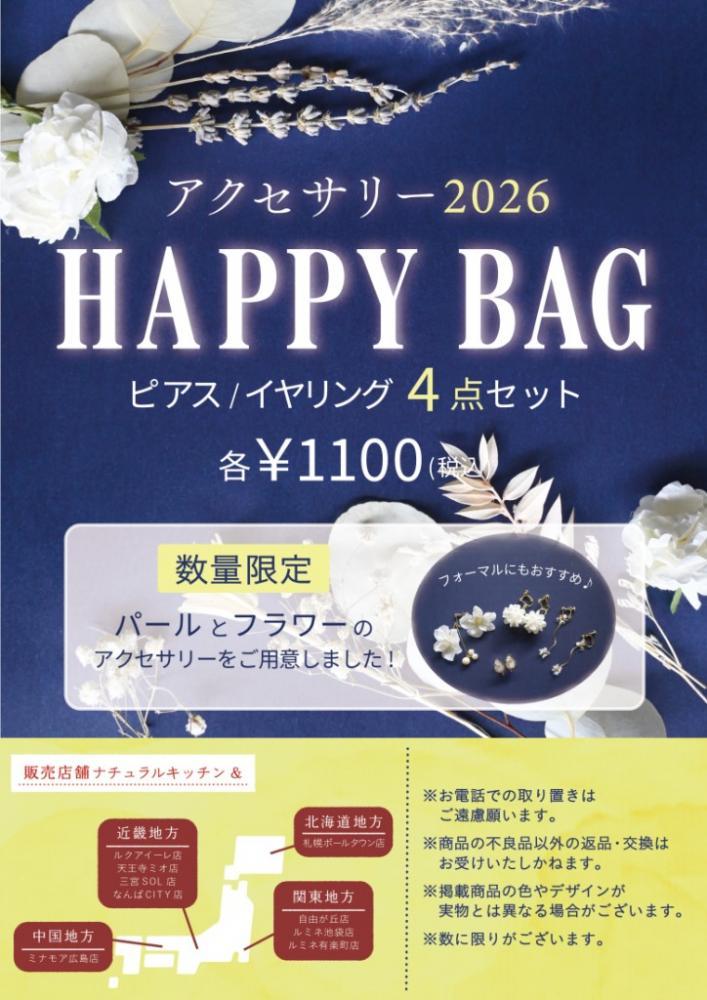 食器やインテリアを取り扱う雑貨屋「NATURAL KITCHEN」各店では、2025年11月29日に「HAPPY BAG 2026」の予約販売を開始しました。