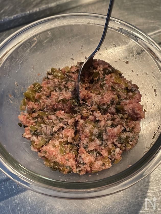 (1) ボウルに【A】を入れ、粘り気が出るまでスプーン等で混ぜ合わせる。