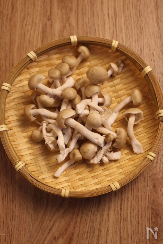 (下準備) しめじは石づきを落としてほぐしておく。