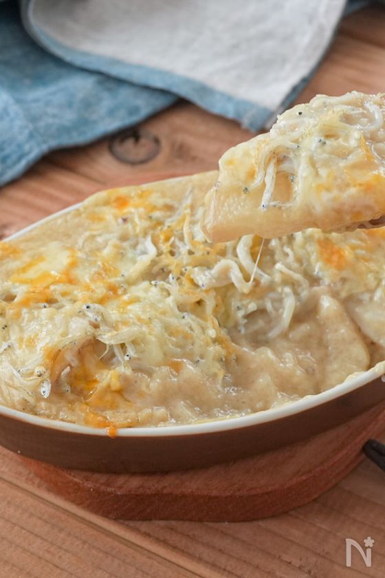 (2) 耐熱容器に【A】の材料を入れて混ぜ、600wのレンジで4分加熱する。