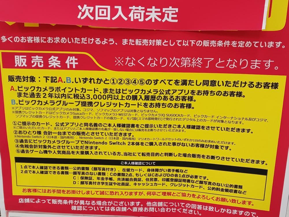 全国に店舗数が多い家電量販店「ビックカメラ」は2025年10月現在、"条件付き"でSwitch 2を販売しています。
