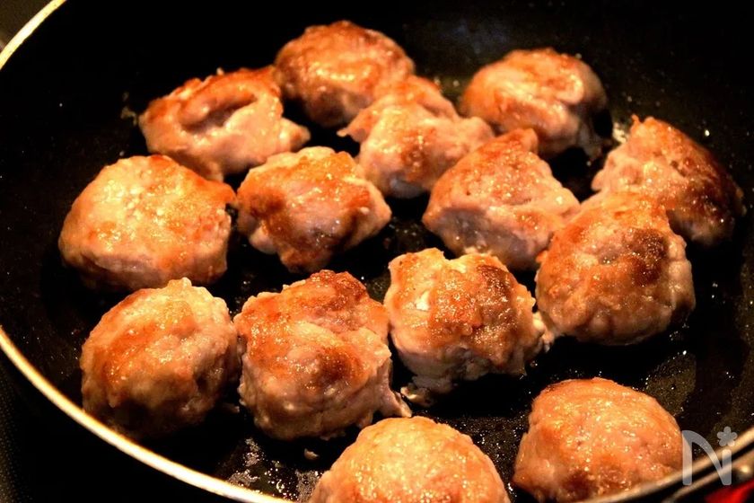 豚こま団子は大きすぎると火が通りに時間かかります。
