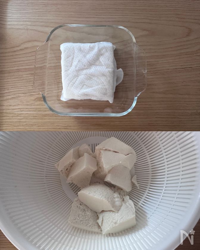 ・豆腐はしっかり水切りすることで、崩れにくく仕上がります。