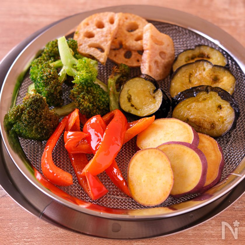 ・素揚げ野菜は火が通りやすいよう根菜などは薄めにカットするのがコツです。野菜の水分はよく拭き取ってから素揚げしてください。