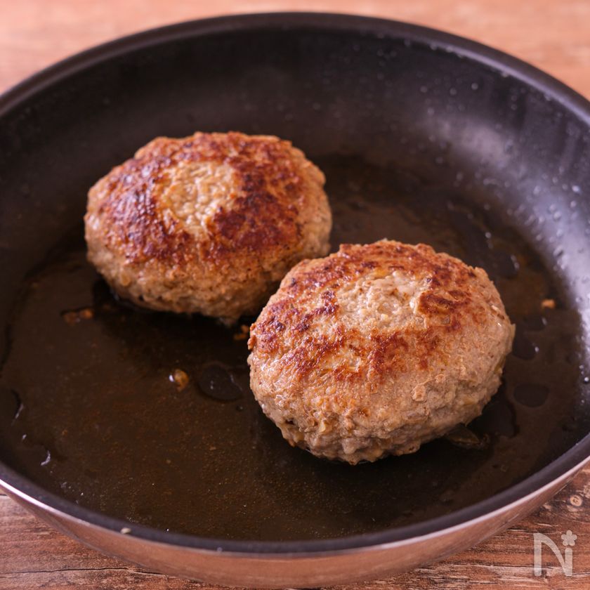 ・「合い挽き肉に塩を加えてこねる」「手にサラダ油を塗ってタネを成形しオイルコーティングする」「タネを成形したあと冷蔵庫で休ませる」ことがハンバーグをジューシーに仕上げるためのポイントです♪