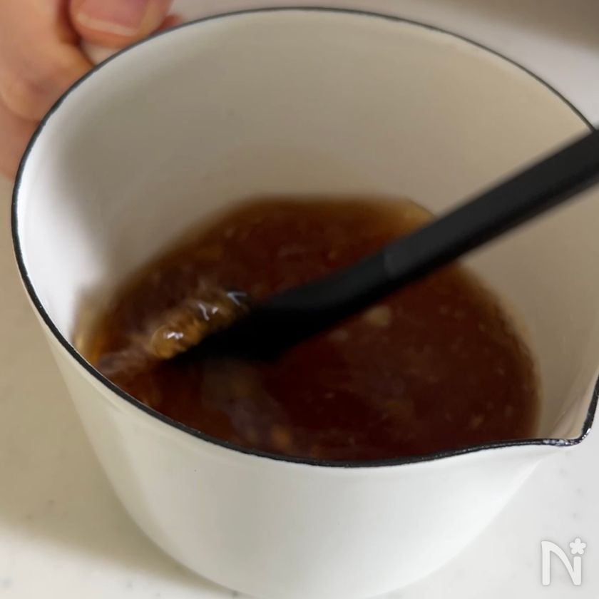 (4) 熱いうちに【A】を加え、粗熱が取れたら10分ほど冷蔵庫で冷やす
