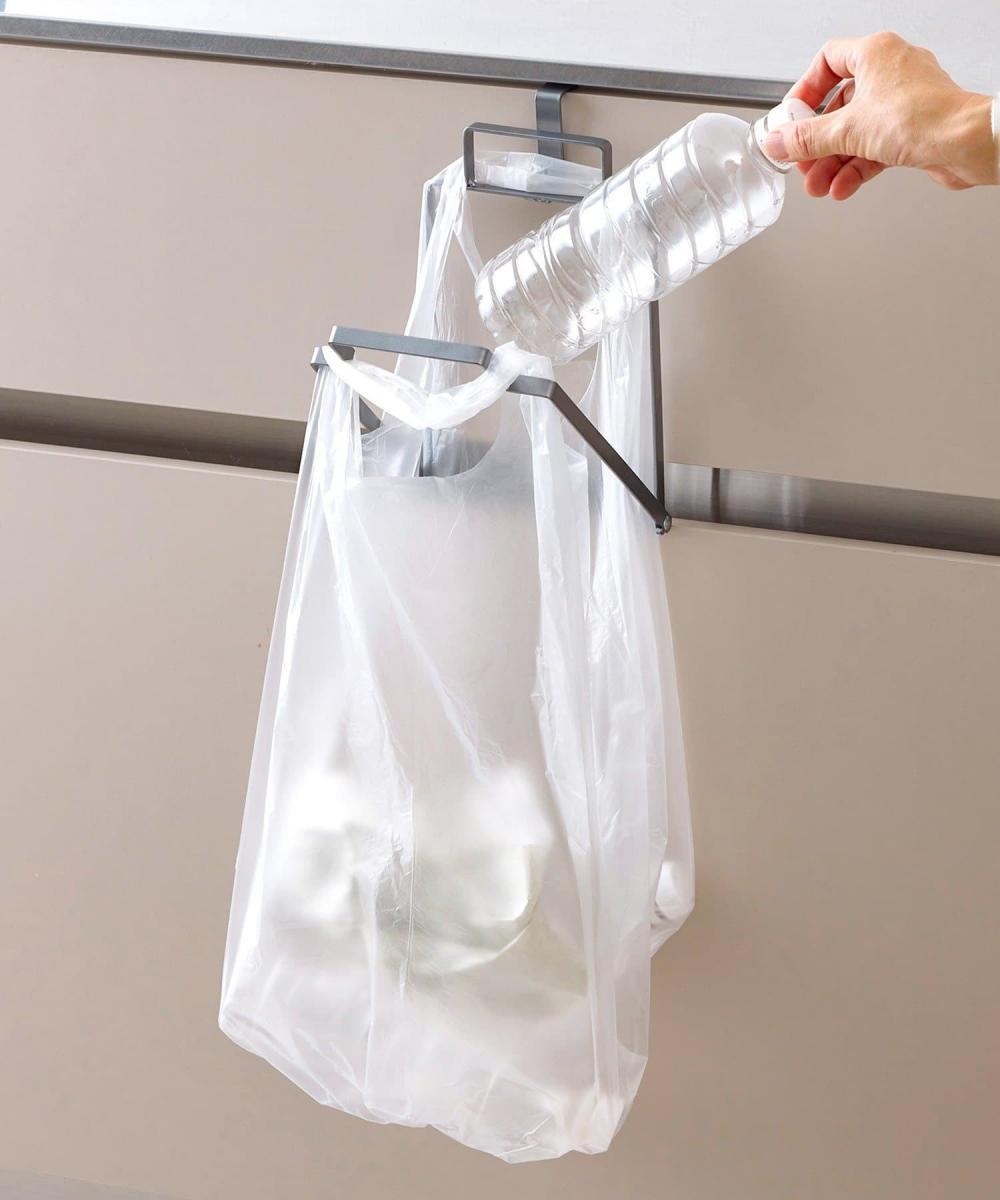 キッチンの扉や引き出しに引っ掛けて、ポリ袋を掛けられる便利グッズです。ハンガーのような形で、ゴミ袋をセットするだけで簡易ゴミ箱として活用できます。使わない時は折りたたんで収納でき、キッチンの邪魔にならないコンパクト設計も魅力です。