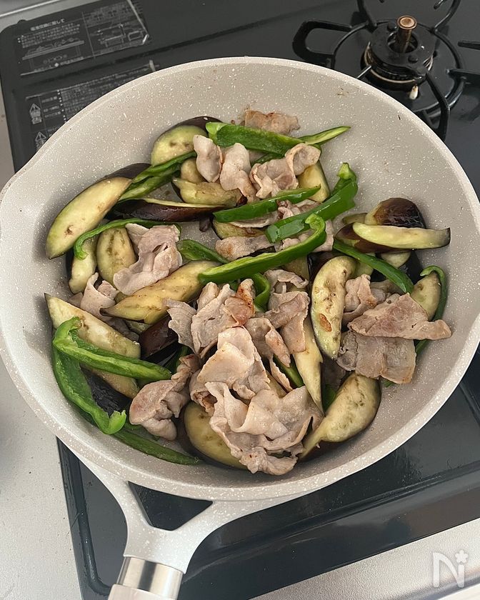 【豚バラとなすの柚子ポン炒め】さっぱり美味しい♪