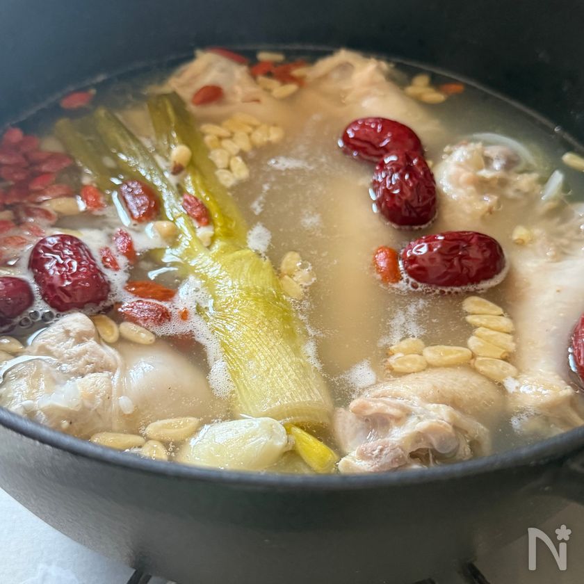 【手羽元de参鶏湯(サムゲタン)】材料を揃えて煮込むだけ