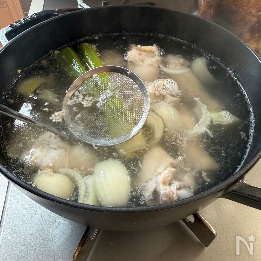 沸騰したらアクをとり、弱火にして30分から1時間、じっくり煮込む。