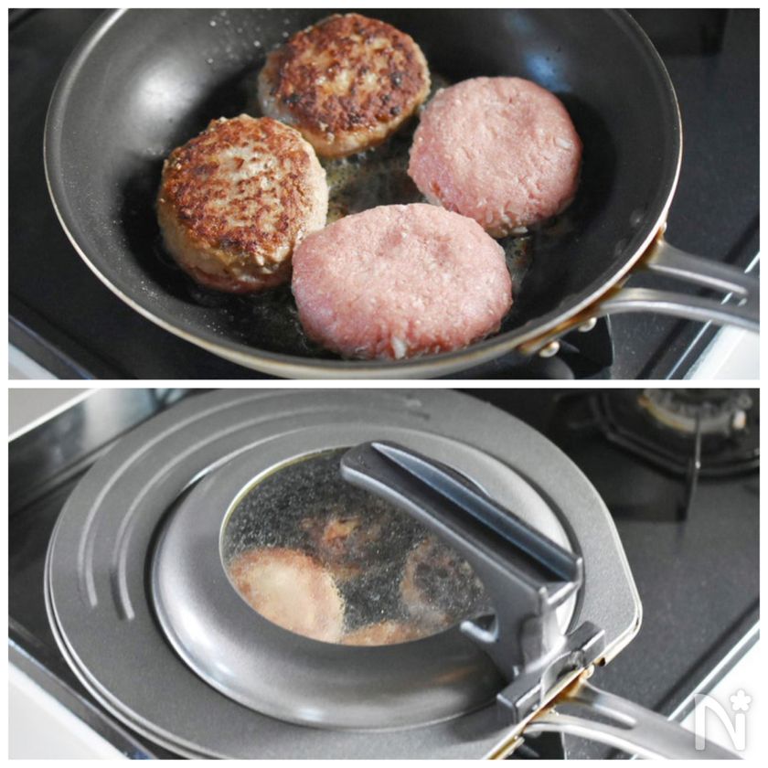 2分ほど焼いて、焼き色がしっかり付いたら裏返し、フタをして弱火で5分ほど蒸し焼きにする。