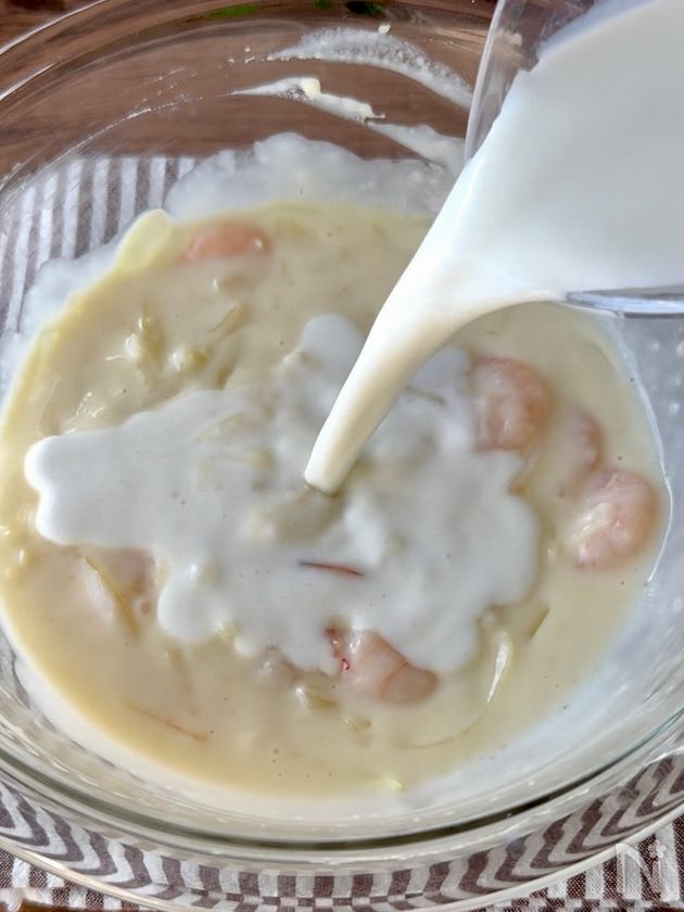 ◎ 小麦粉→牛乳の順で混ぜるとダマになりません。