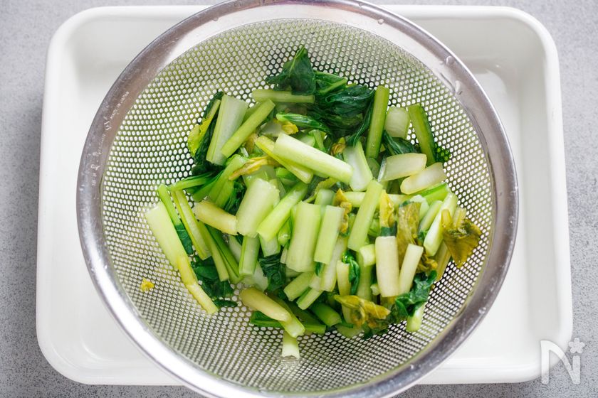 ⚫︎お急ぎの方は、小松菜に熱湯をかけたあと、流水に当てて冷ましてOKです。