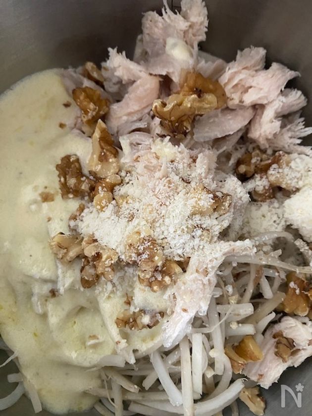 (3) ごぼうとささみ くるみとグラナパダーノチーズの半量を