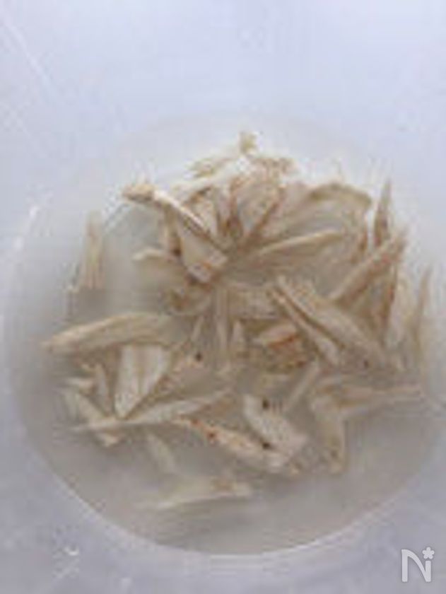 (1) ごぼうはささがきにして、水に浸けておきます。あく抜き。