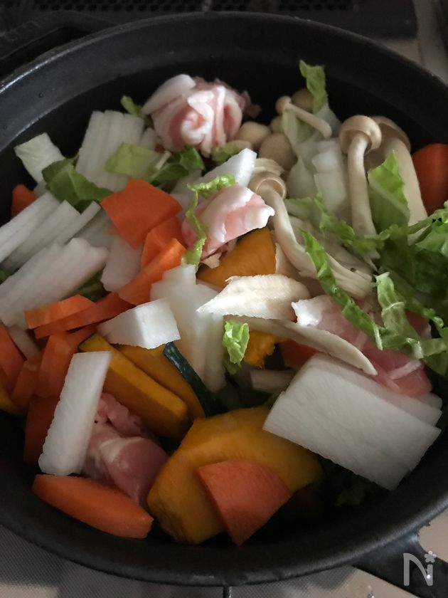 かぼちゃがなければ、じゃがいもでアレンジしてください。コツは煮崩れするまで煮る事です。野菜は冷蔵庫の中の野菜で作ります。油揚げや、豆腐を入れても美味しいです。ポイントはかぼちゃ又は、じゃがいもを入れて、煮崩れただし汁で煮る事です。