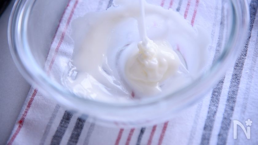 (4) 卵白(L)に小さじ1のレモン汁を入れて泡立てると泡立ちやすくなります。