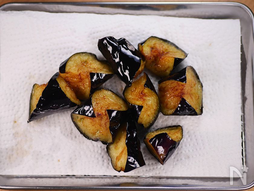 ✅なすは素揚げが美味しいですが、フライパンで蒸し焼きにしても可