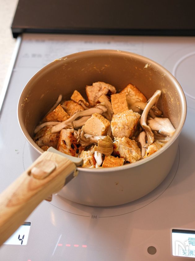 厚揚げはキッチンバサミでひと口大に切って加え、さっと炒め合わせる。