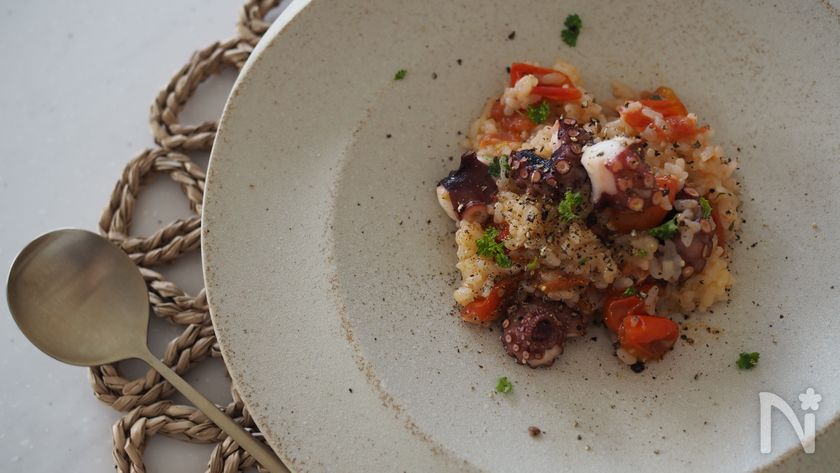 タコと焼きトマトのアラビアータ風リゾット。