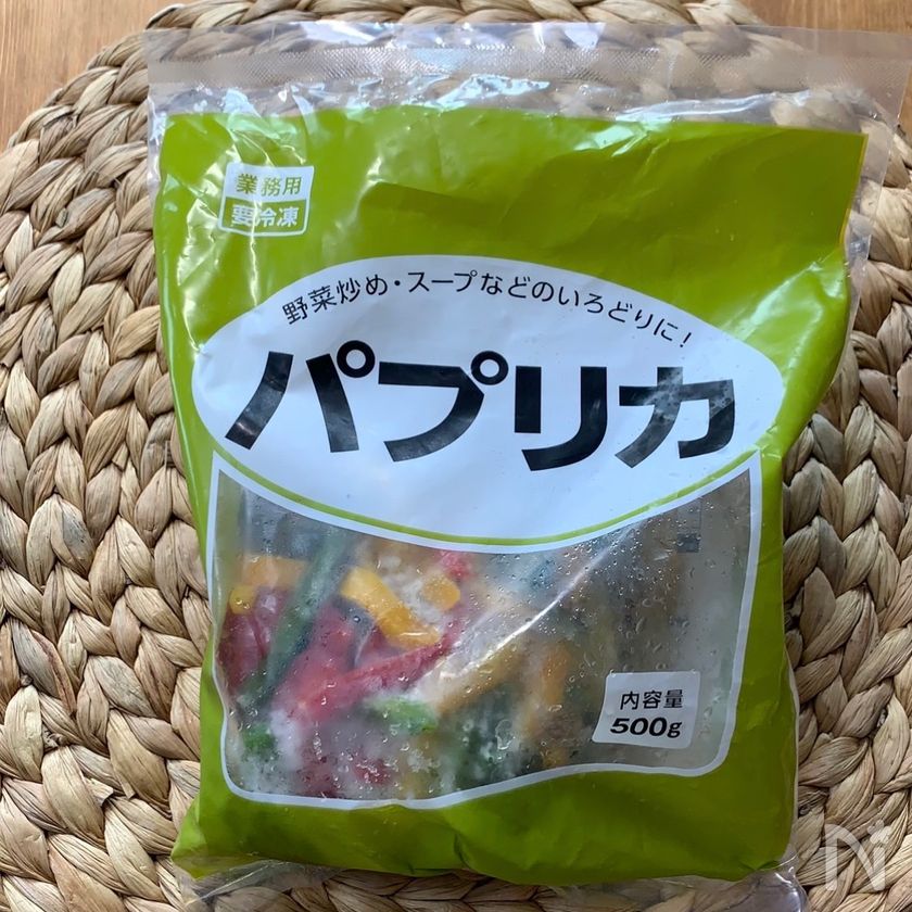 (6) 業務スーパーのパプリカを使用。種取りやカットの手間がなく、生パプリカよりも手軽&長持ち。彩りが欲しいときにサッと使える便利な食材。