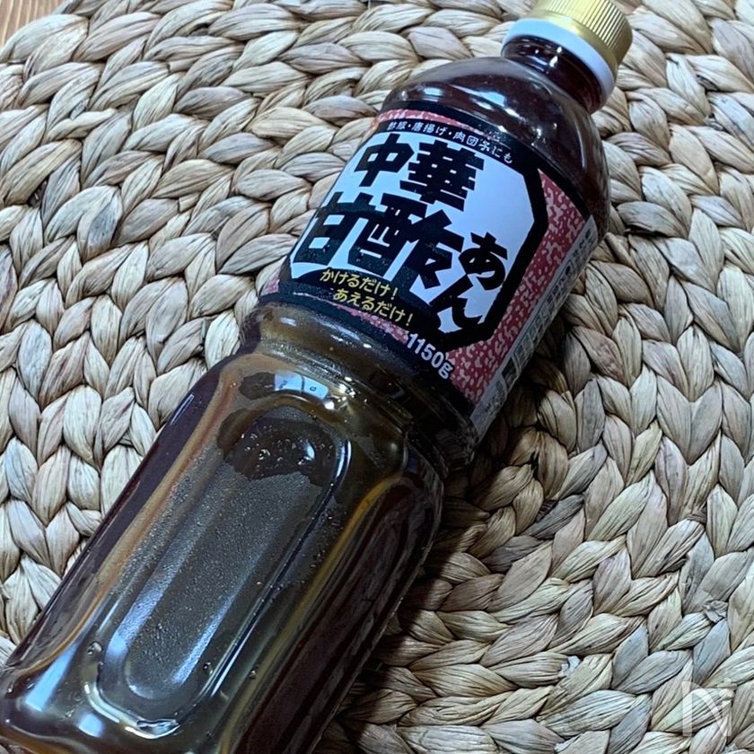 (5) 業務スーパーの中華甘酢あんを使用。かけるだけで味が決まる万能調味料で、甘酸っぱさとコクが絶妙。1本あると他の料理にも使える便利アイテム♪
