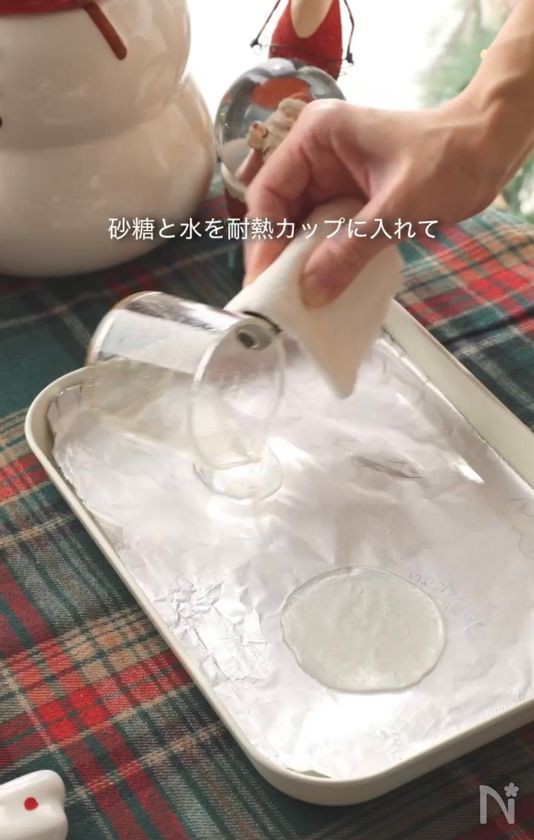 (1) 小さめの耐熱カップにグラニュー糖 と水を入れる(混ぜずにそのままでOK)