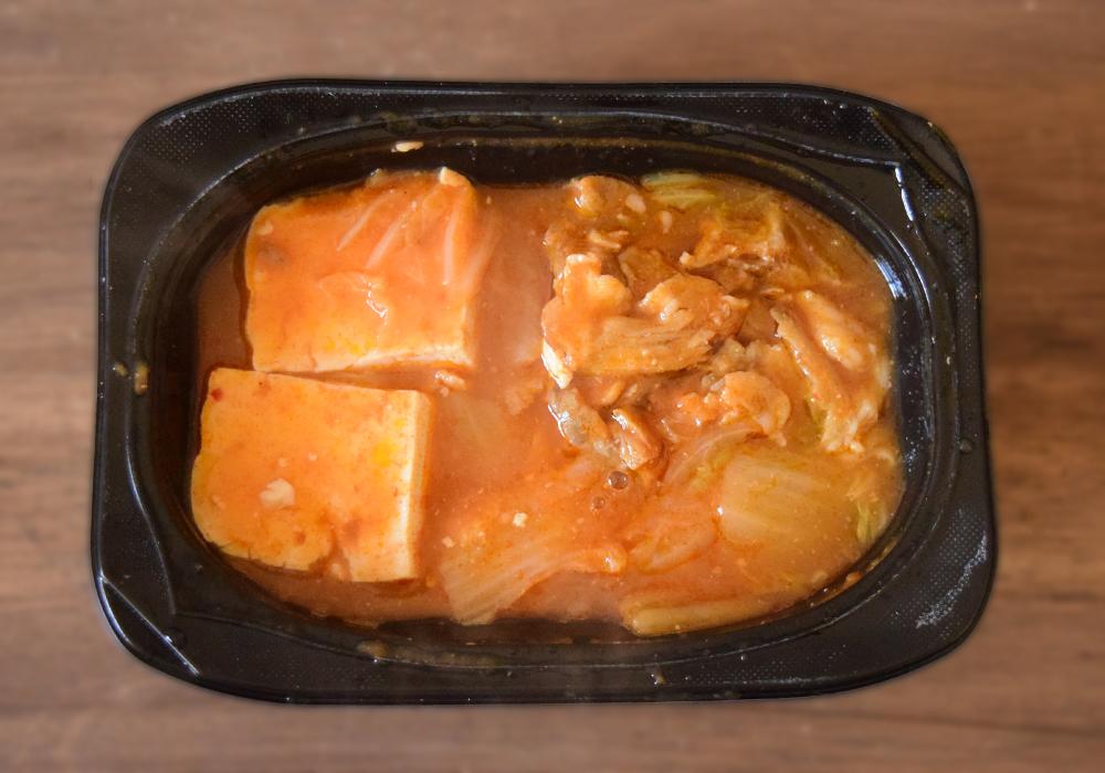 具材は豆腐に白菜、豚肉、はくさいキムチ。あさりは入っていませんが、ファミリーマートのチゲと似ています。