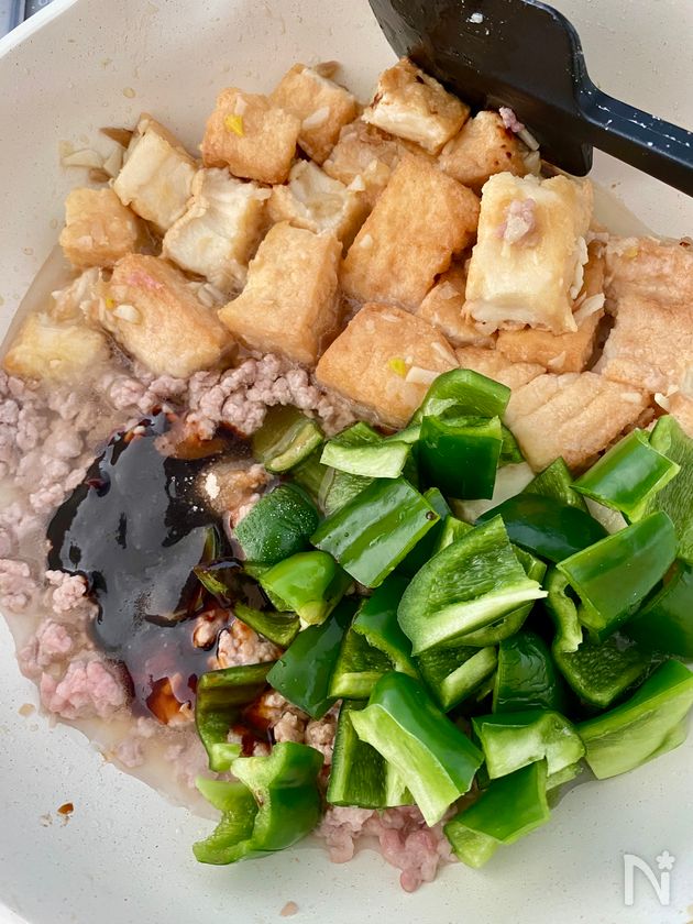 【絹揚げとピーマンの回鍋肉風とろみ炒め】ご飯もビールも進む♪