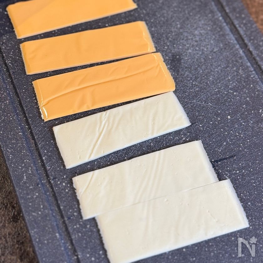 ・スライスチーズは、プレーンとチェダーを組み合わせると、彩りもよく仕上がります♪