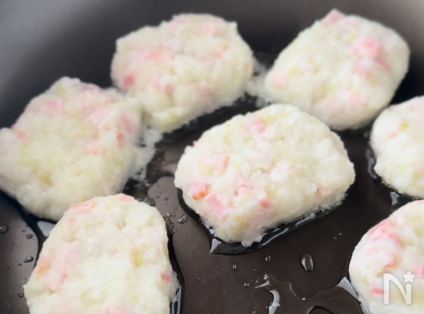 (4) フライパンに太香ごま油(サラダ油)をひき、③を焼く。