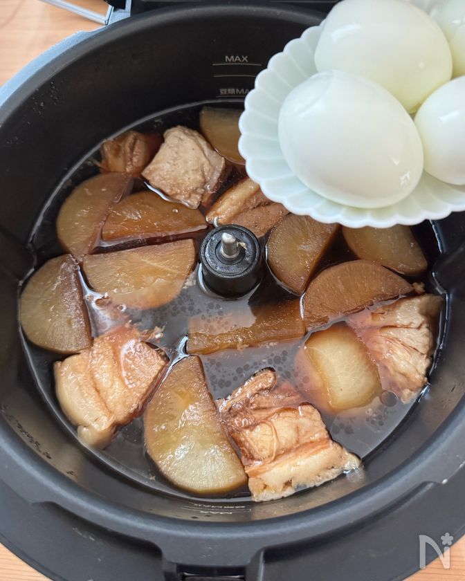 さらに、煮上がったものに、半熟卵を漬け込んでも(⚠危険なので決して圧力はかけないこと!)