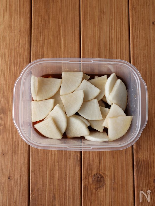 大根は5mm幅のいちょう切りにする。