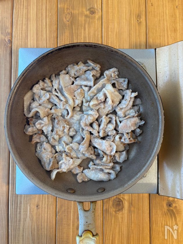 豚こま肉を加えて炒める。