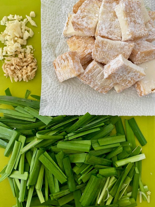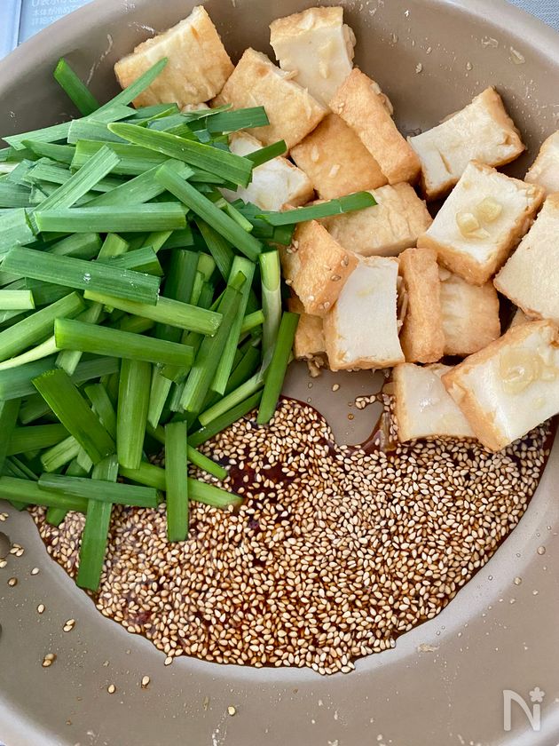 【絹揚げのにらダレ炒め】5分で完成!焼肉のタレでお手軽に♪