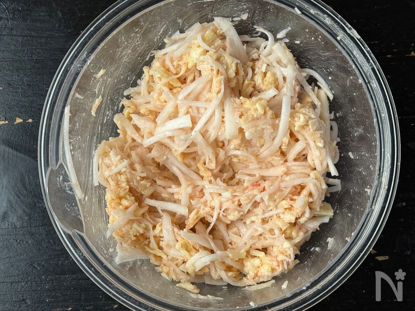 かぶから水けがでるので、とにかくしっかりと混ぜてください。