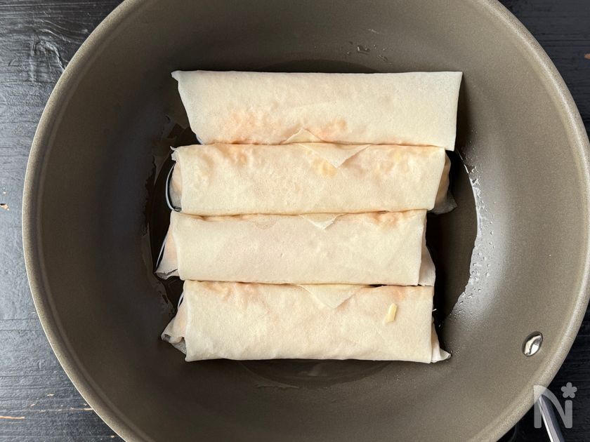 (5) サラダ油を熱したフライパンに4を並べ、中火で焼く。