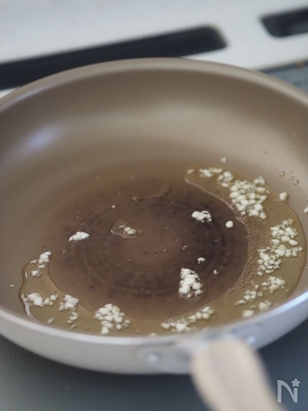 フライパンにオリーブ油をひき、弱火で炒める。