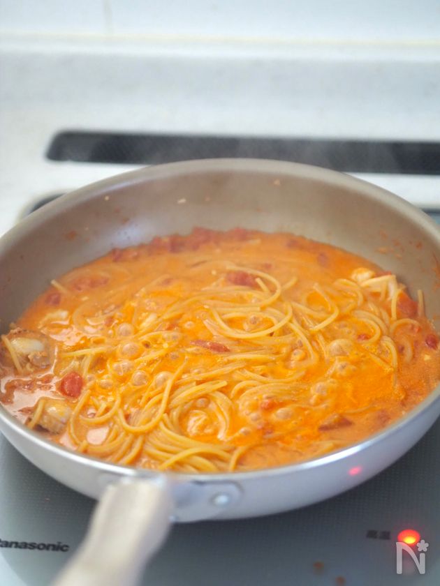 【シーフードのトマトクリームパスタ】ワンパン!