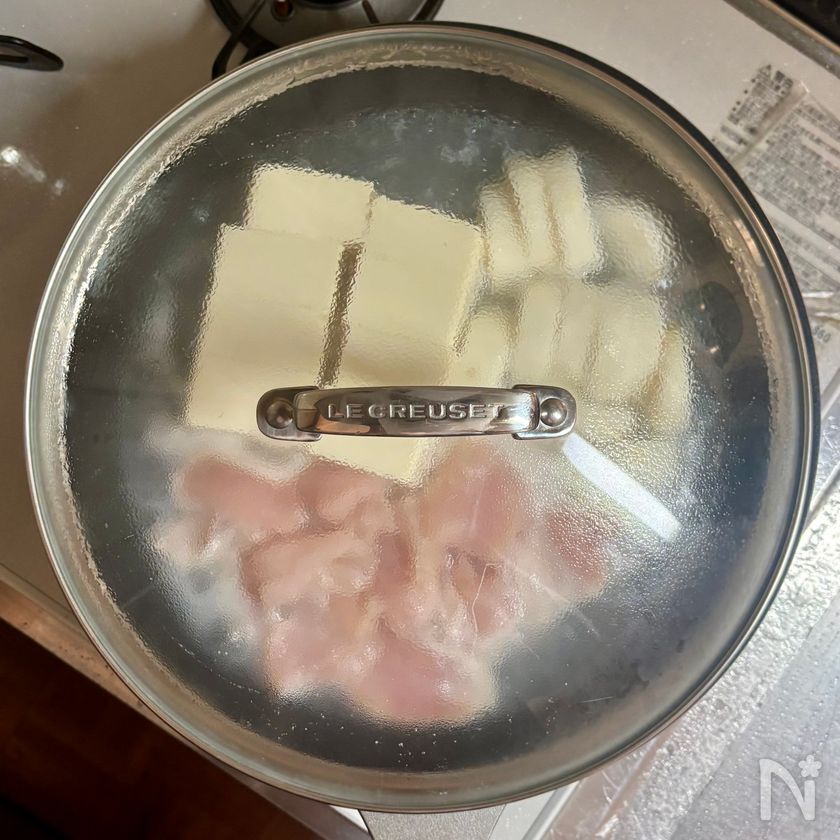 弱火で蒸し煮にしてください。火が強いと、鶏むね肉が固くなり、豆腐に「す」が入ってなめらかな食感が損なわれます。