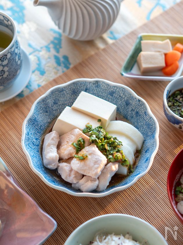 【鶏むね肉、長芋、豆腐のにらしょうゆかけ】ダイエット中にも♪