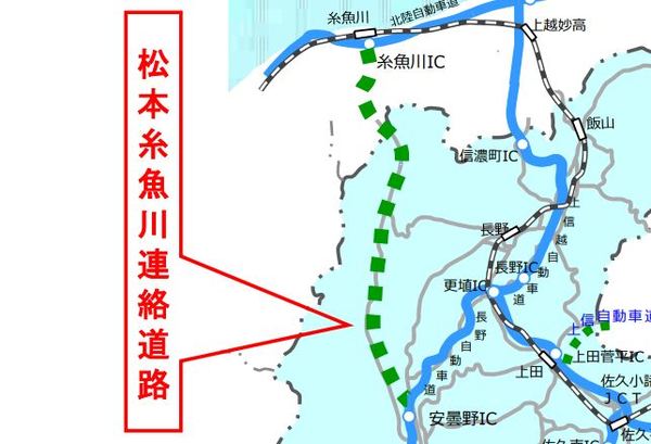 この道路により、大町・白馬方面の長野道からのアクセスが向上。さらに、富山方面から松本市や中央道方面へ、長野市をバイパスしてショートカットするルートにもなります。