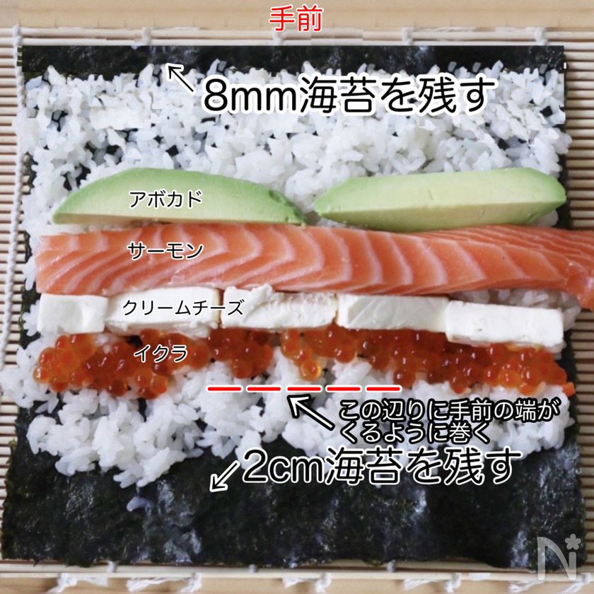 すし飯の半量を手前は8mm