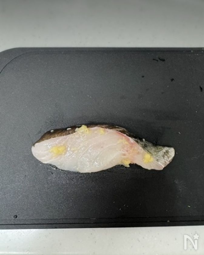 (1) 生たら切り身(無塩)は、ついている水分をキッチンペーパーで拭ってから塩麹を塗り、10分ほど置き、食べやすく切る。