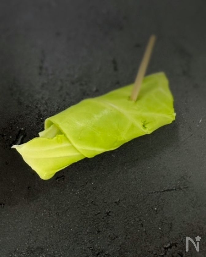 キャベツは巻いて楊枝で止めるとせいろに詰めやすい。