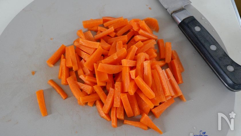 ※にんじんは火が入ると、だいぶ小さくなります。気持ち太めに切っておくと、食べ応えが出ます。