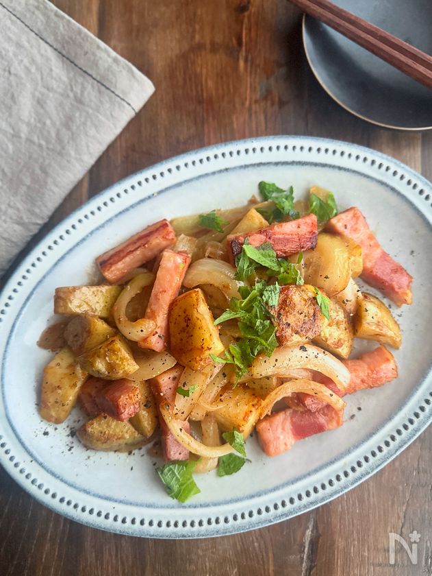 【新じゃがいもと新玉ねぎのジャーマンポテト】和風が美味しい!